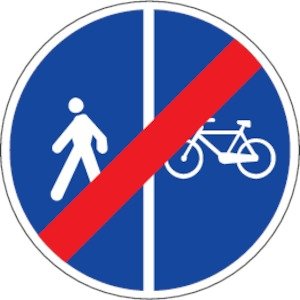 La señal representada se coloca al final de los carriles reservados para peatones y bicicletas
