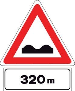Il segnale raffigurato indica un tratto di strada deformata lungo 320 metri