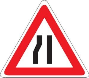 Il segnale raffigurato preannuncia un restringimento della carreggiata